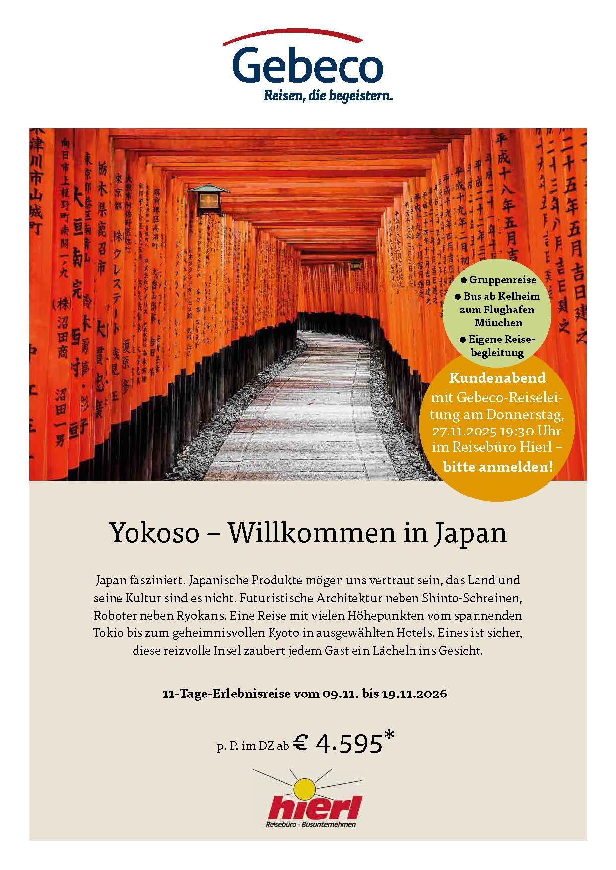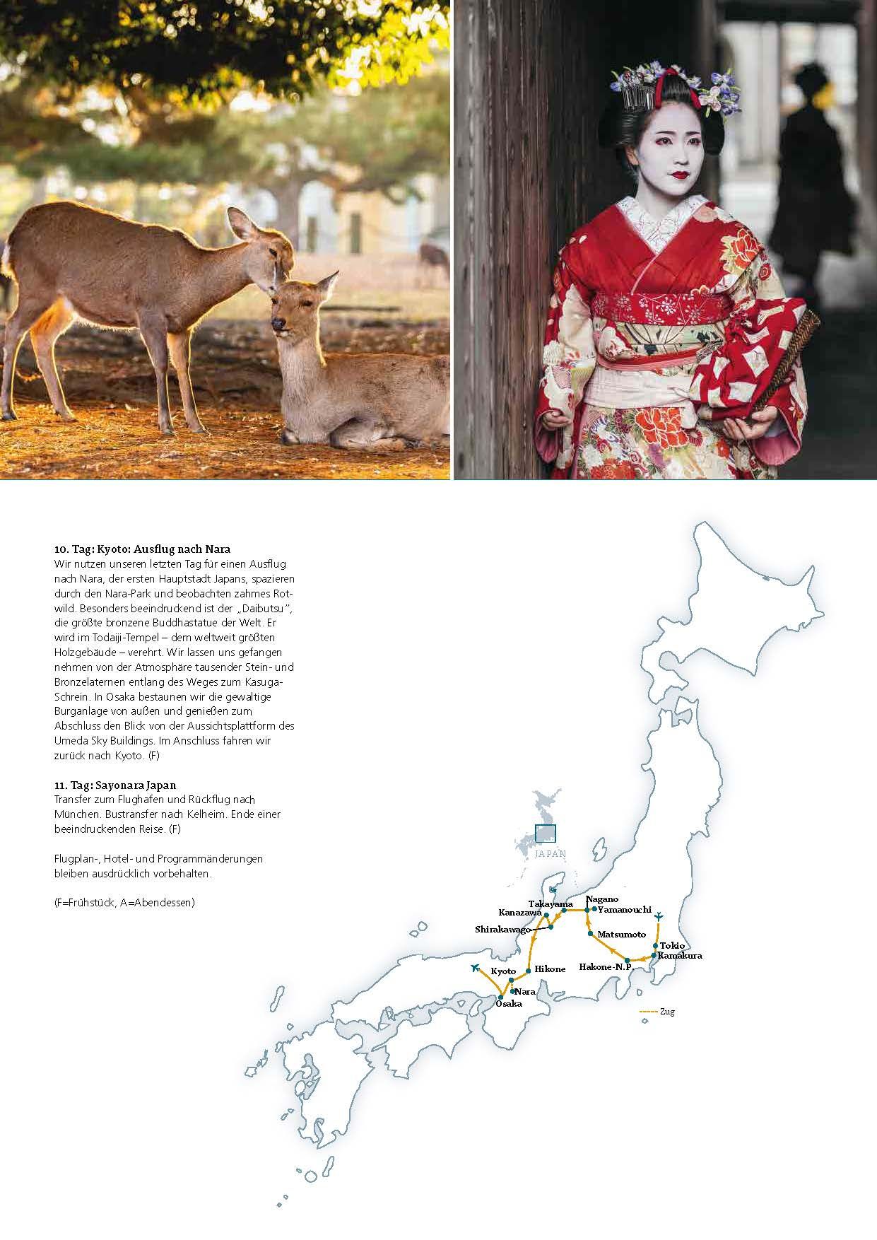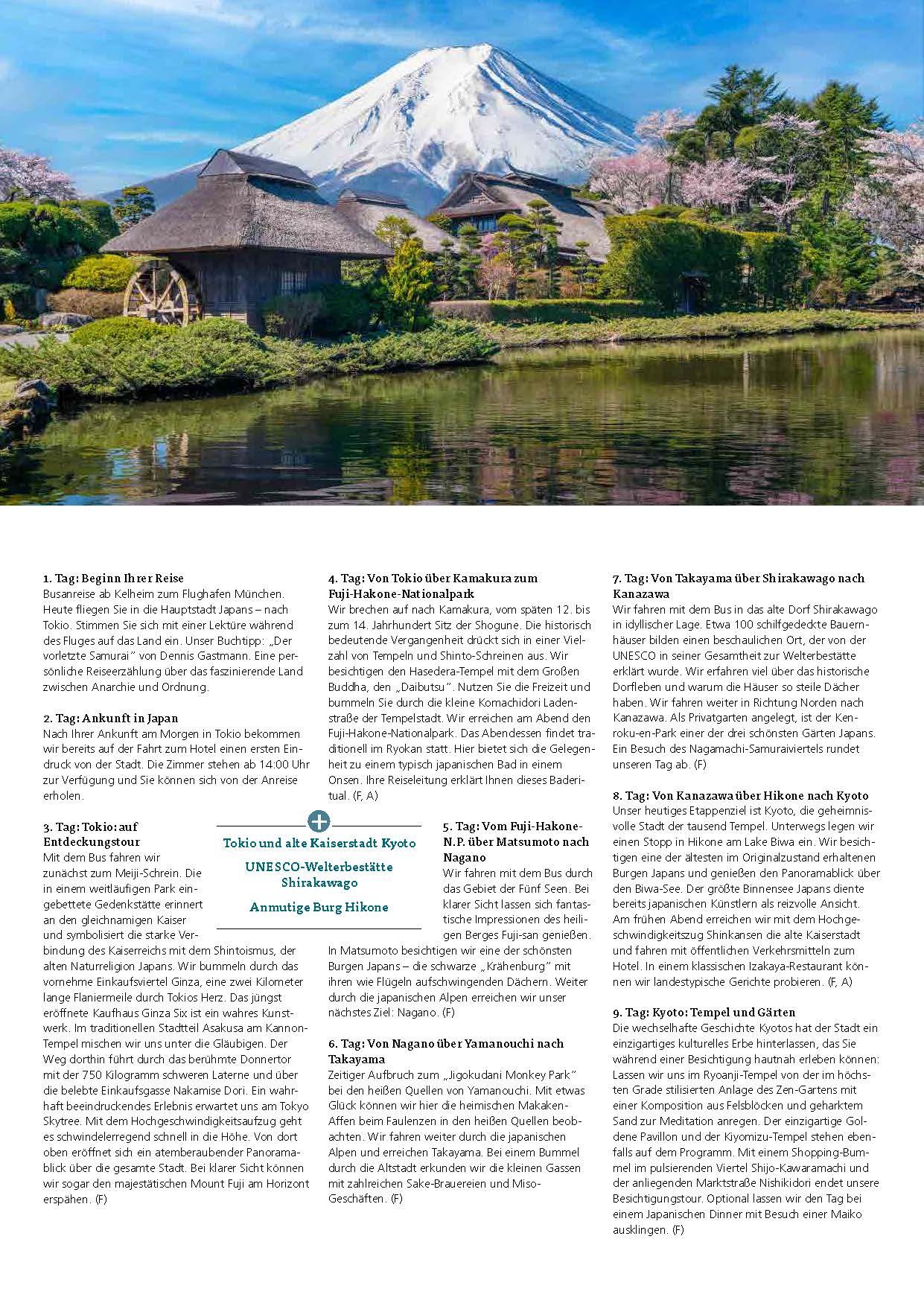 Japan fasziniert. Japanische Produkte mögen uns vertraut sein, das Land und seine Kultur sind es nicht. Futuristische Architektur neben Shinto-Schreinen, Roboter neben Ryokans. Eine Reise mit vielen Höhepunkten vom spannenden Tokio bis zum geheimnisvollen Kyoto in ausgewählten Hotels. Eines ist sicher, diese reizvolle Insel zaubert jedem Gast ein Lächeln ins Gesicht.